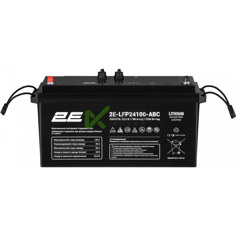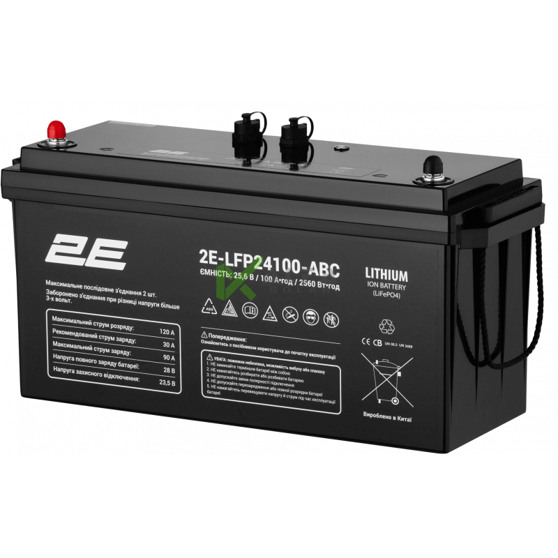 Литий-железо-фосфатный аккумулятор 2E LFP24100 24/100 Ah, ABC 8S – имеет значительный срок службы батареи более 6000 циклов при 0.25С – 80% DOD.
