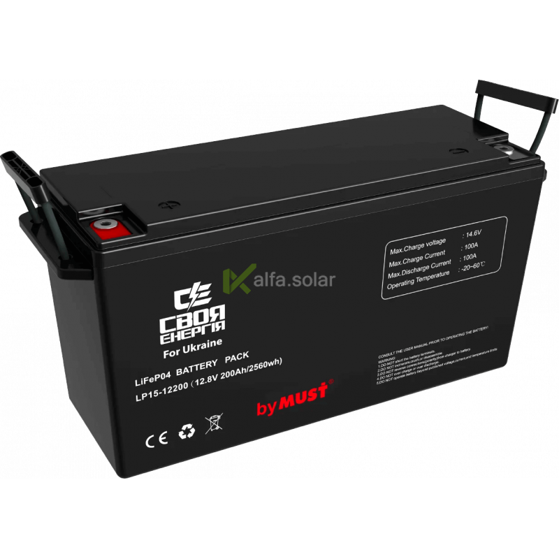 Литий-железо-фосфатный аккумулятор Своя Энергия by MUST LP15-12200 LiFePO4, 12,8В 200A/г – имеет значительный срок службы батареи более 4000 циклов при глубине разряда 80% DOD.