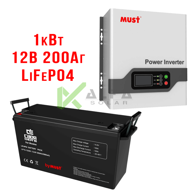 Мощность инвертора: 1000 Вт (2кВт пуск) / Отбираемая мощность в сутки: 1,3 кВт / Работа с генератором / Напряжение АКБ: 12В