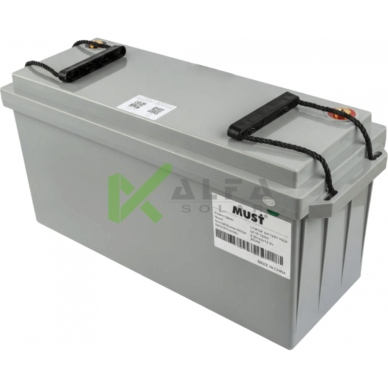 Літій-залізо-фосфатний акумулятор MUST LP15-12200 LiFePO4, 12,8В 200A/г – має значний термін служби батареї більше 4000 циклів при глибині розряду 80% DOD.