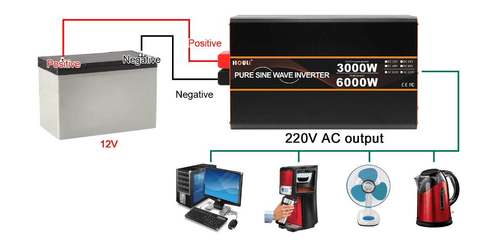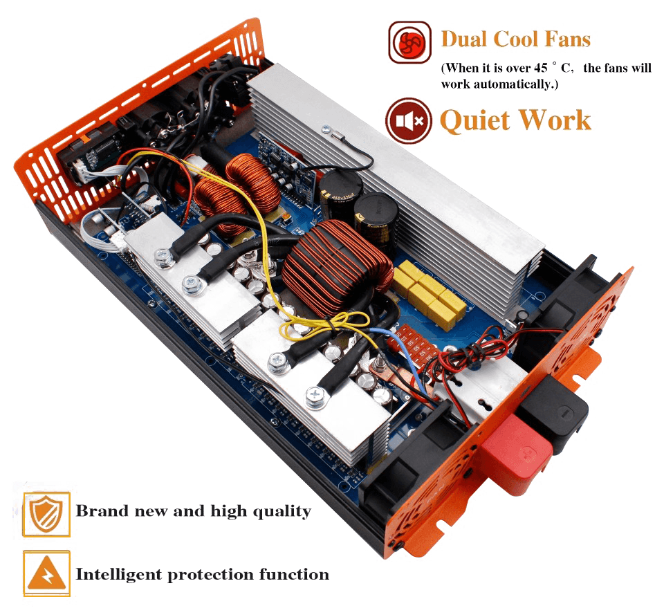 Інвертор представляє собою компактний і портативний перетворювач потужності. З DC-виходу в вашому автомобілі, на човні або безпосередньо з акумулятора інвертор буде ефективно і надійно управляти широким спектром побутових AC-приладів, таких як: телевізори, комп'ютери, відеомагнітофони, і багато іншого. Інвертор призначений для забезпечення безперебійної роботи і включає в себе автоматичну схему контролю інвертора і акумулятора від ненавмисних перевантажень.