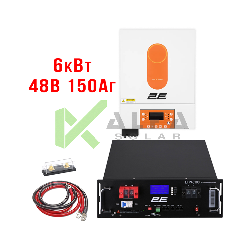 Потужність інвертора: 6кВт / Тип сонячного контролера: MPPT / Напруга: 48В / Встановлена ємність АКБ: 1х150 Аг /Тип АКБ: LiFePO4