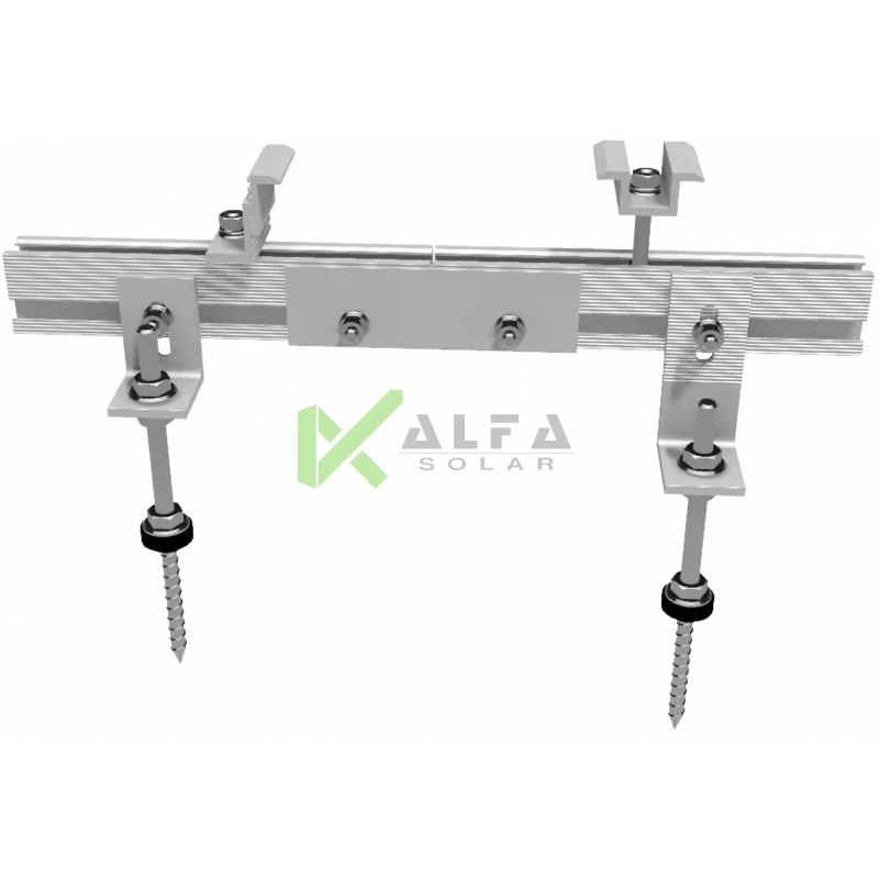 За допомогою цього комплекту можна здійснювати монтаж сонячних панелей на даху з металочерепиці, на плоскій оцинкованої покрівлі, на покрівлі з гнучких гідроізоляційних матеріалів (шингас і т.п.), на даху з ондуліна, шиферу та профнастилу. Система кріплення сонячних модулів для похилого даху під кутом 30-60гр. Установка модулів паралельно площині даху.